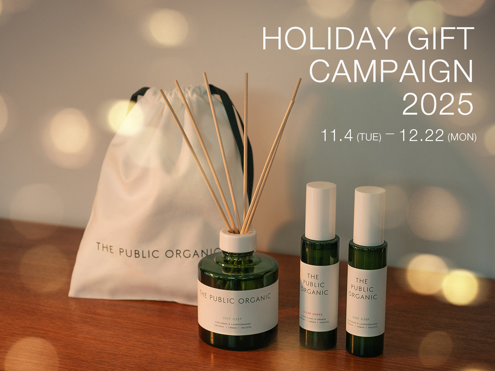 ホリデー期間中、ザ パブリック オーガニックの商品を4,500円以上ご購入で巾着プレゼント。条件を満たすと巾着が自動でカートに入ります。