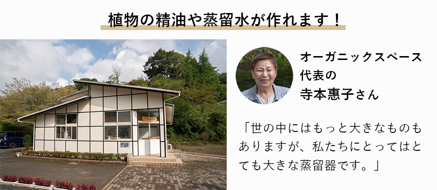 さらに植物の蒸留水を製造できる場所があれば、有機農家さんたちの負担が少なく良質な原料が作れ、地域活性化の一助になります。
