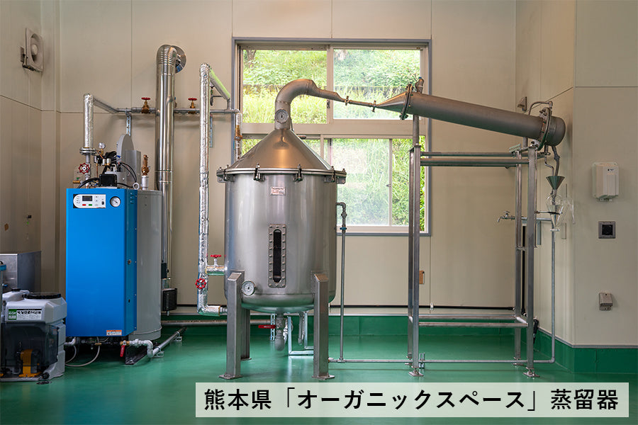 熊本県でオーガニック原料を製造する「オーガニックスペース」社の協力により、同社の敷地内にカラーズの茶葉水や精油を製造するための大型蒸留器を設置いただいています。